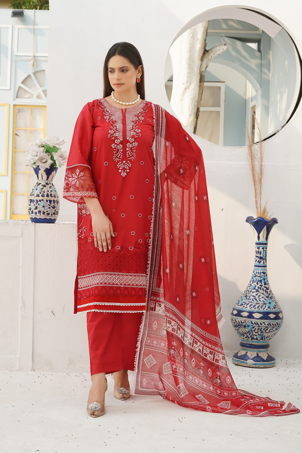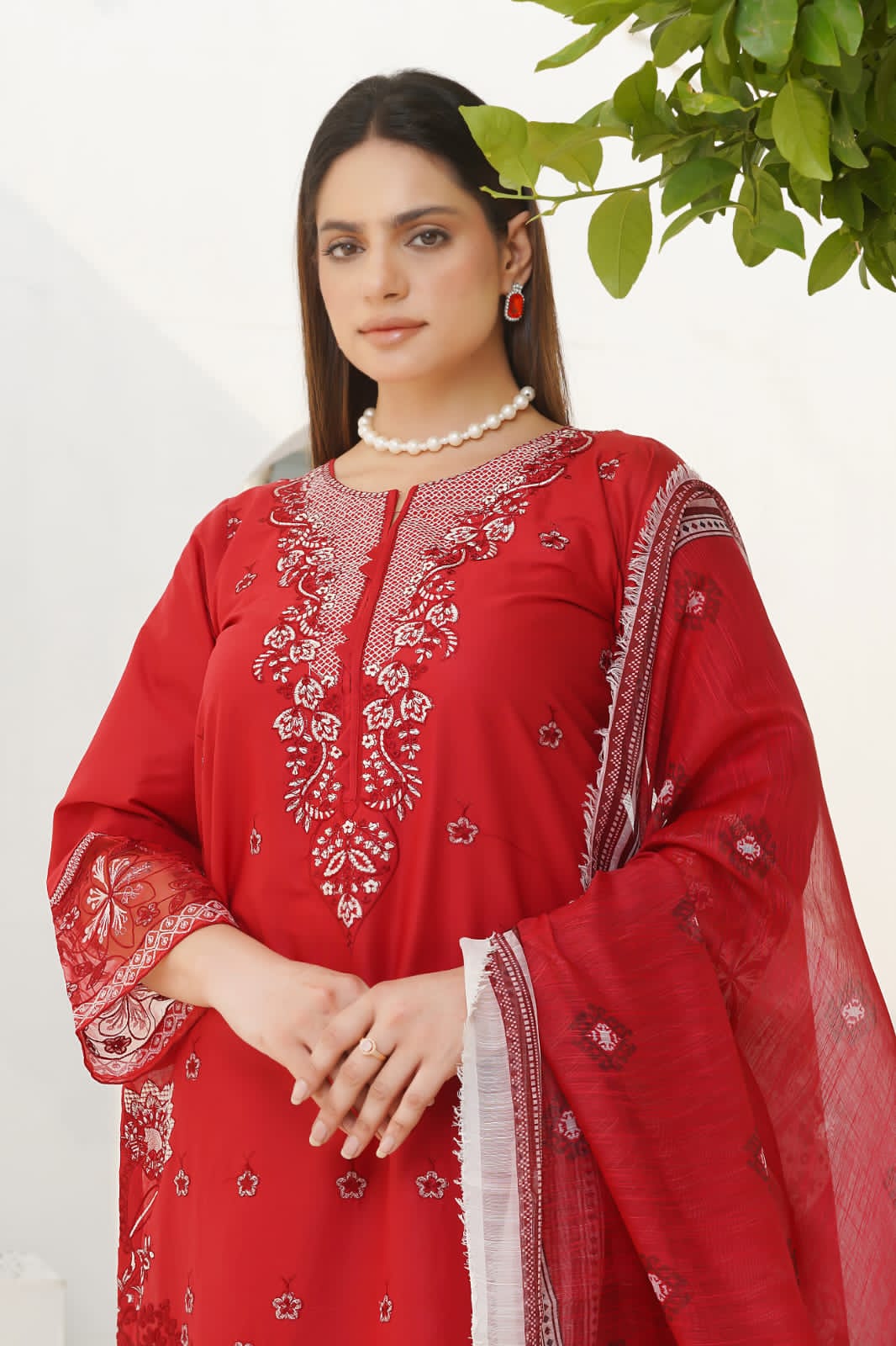 Fine embroidery, straight-cut shirt with detailed sleeves, printed dupatta with subtle patterns to complement the look, matching straight-cut trouser