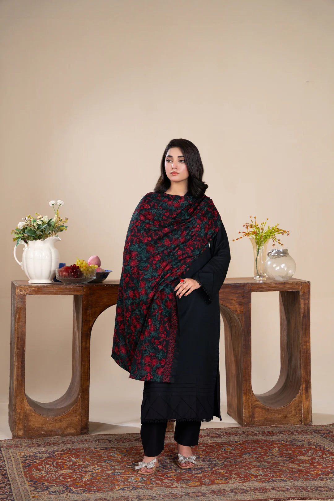 Paired with a soft lightweight Dhanak shawl, adorned with deep red and emerald floral patterns, Layal becomes a statement of quiet elegance — perfect for the woman who values both comfort and class. Every detail, from its delicately accented buttons to its graceful fall, reflects Siraphina’s commitment to finesse and finesse.