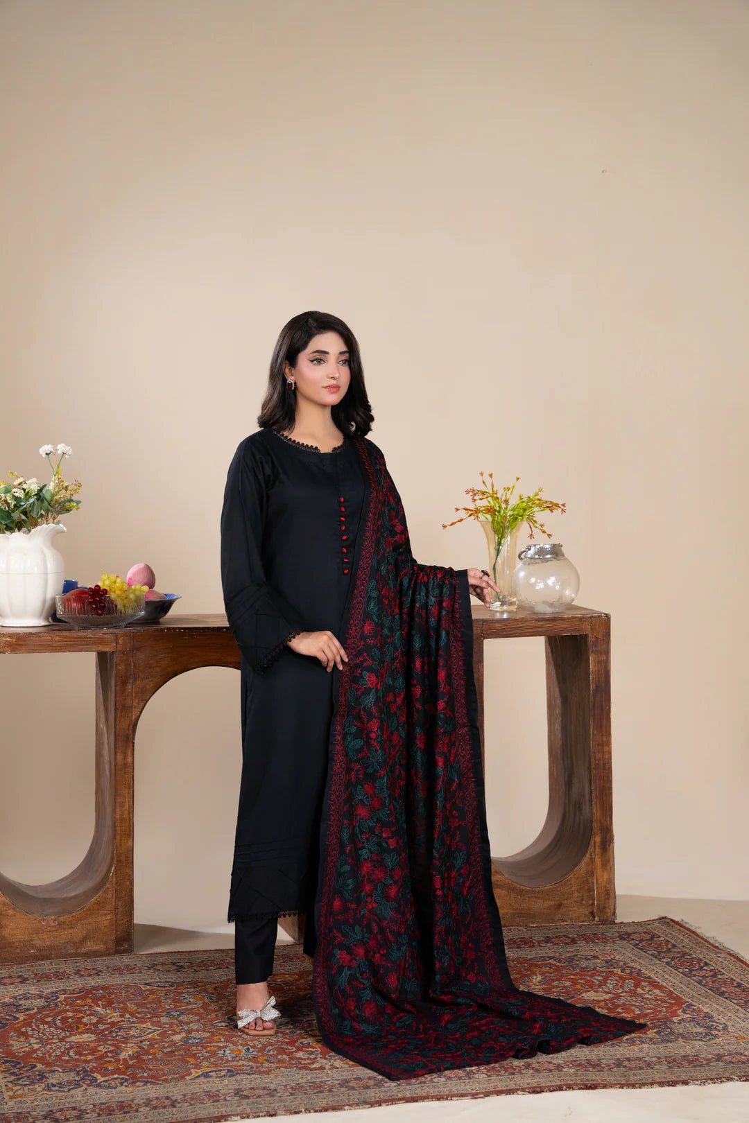 Embrace the essence of understated luxury with Layal, a masterpiece that blends timeless grace with winter warmth. Crafted from premium winter cotton, its sleek black silhouette speaks of effortless sophistication, while the fine tailoring ensures a perfect balance of comfort and poise.
